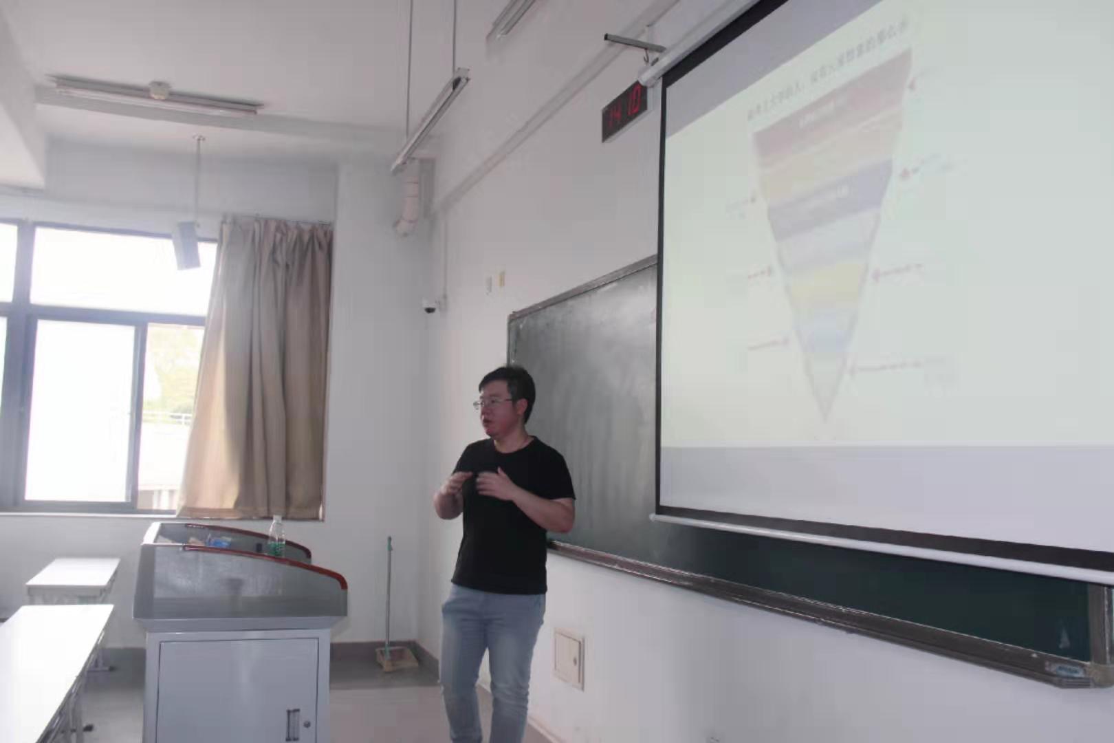 首先,吴政霖学长就“怎么定位自己”告诫学生们在大学中,要保持积极向上的状态,并参考历年高考数据赞赏南审学子,社会对我们的期望就是前20%。