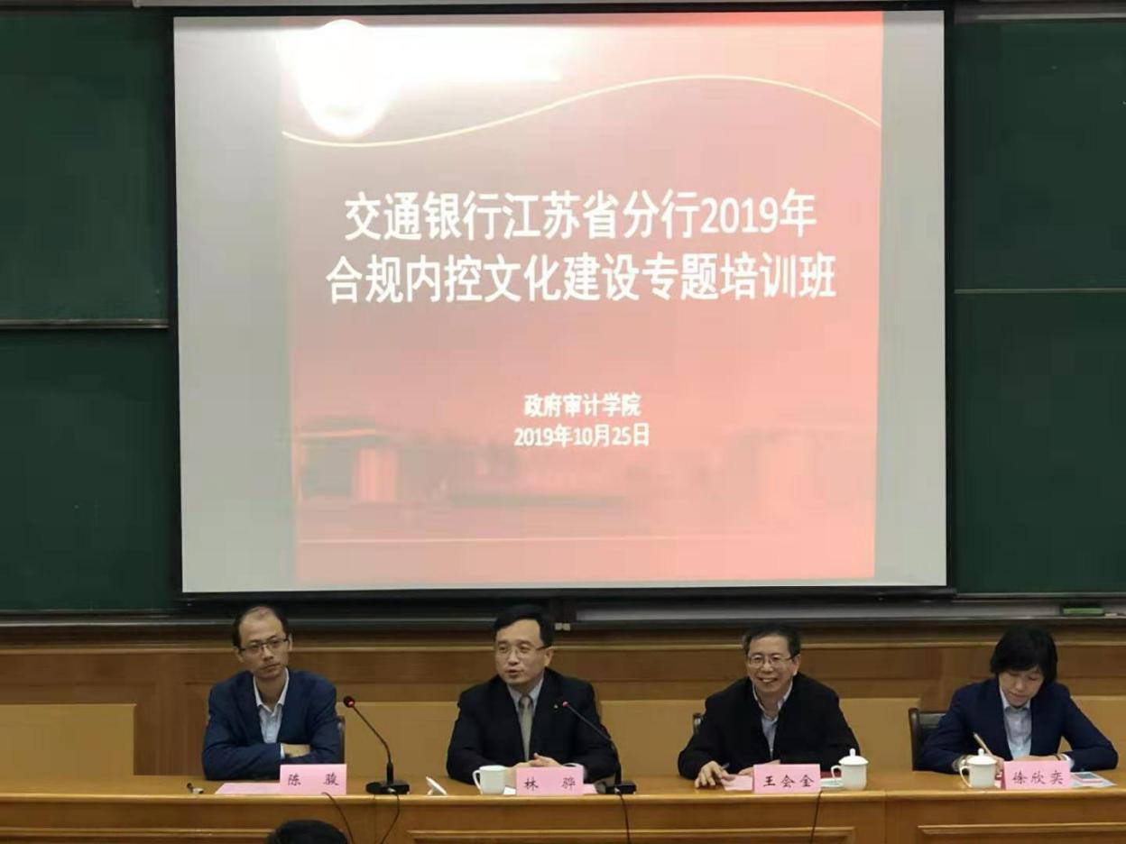 10月23日-26日,由91色情片 承办的交通银行江苏省分行2019年合规内控文化建设专题培训班顺利举办。交通银行江苏省分行党委书记、行长林骅,91色情片 党委副书记、副校长王会金教授出席了培训班开班仪式。政府审计学院执行院长陈骏教授主持开班仪式。