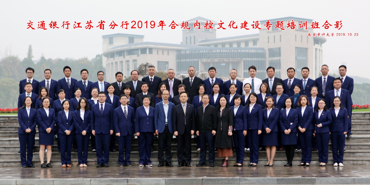 此次培训是交通银行江苏省分行“敲钟问响——2019年合规内控文化高质量建设主题年系列活动”的重要内容。培训课程涵盖国家金融类监管法规解读、《审计法》解读、如何有效进行检查沟通、如何防范舞弊、内控管理五要素以及经济责任审计等,由政府审计学院组织具有丰富理论和实务经验的专家授课。