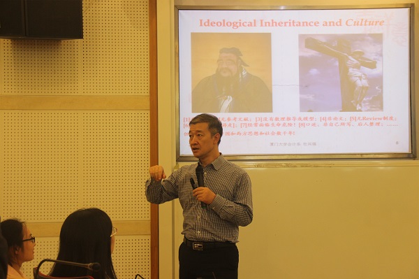 讲座过程中,杜兴强结合自身的丰富阅历和科研、生活经验,生动阐释了语言文化、饮食文化、性别文化、姓氏文化等对会计审计行为的影响,并以数据分析结果进行有效检验,这对同学们的研究思路有着极大的启发。
