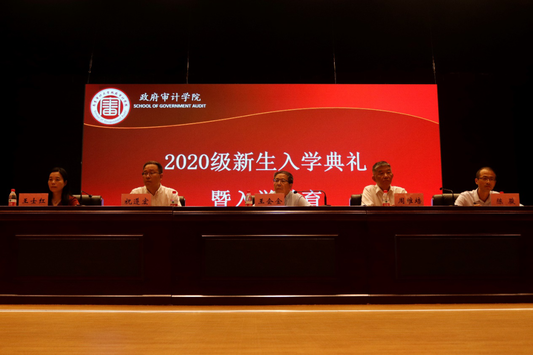 2020年9月13日上午,政府审计学院2020级新生入学典礼暨入学教育在审计干部教育学院学术报告厅隆重举行。校党委副书记、副校长王会金、学院领导班子、澄园书院党委副书记王传伟,学院部分教师和辅导员代表、2020级新生全体班导师出席,政府审计学院360名本科生新生和170名研究生新生参加。
