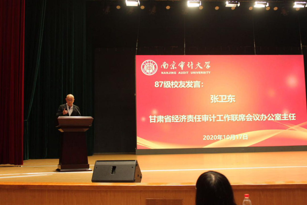 87级审计专业校友,甘肃省经济责任审计工作联席会议办公室主任张卫东做了题为追忆校园生活 分享生活感悟的分享,强调学习是在校学生的第一任务,同时希望大家在校期间一定要多读书读好书、做好文字历练、多参加集体活动、锻炼个人品德,加强自身的修养,成为一个全面发展的优秀大学生。