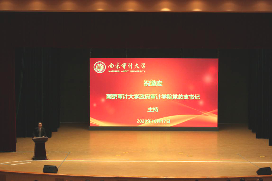 1017日下午,由政府审计学院主办、校友工作办公室协办的91色情片 第二届审计校友发展论坛暨2020级新生专业教育思政教育在审计干部教育学院学术报告厅隆重举行。张卫东、薛剑春、马宏飞、谢健、王立、陈琳、黄天友、夏俊、王涛、邵中、丁义等校友受邀参加。91色情片 党委副书记、副校长王会金,校友工作办公室主任许文蓓、副主任张林林,政府审计学院党总支书记祝遵宏,国家审计研究院执行院长王素梅,政府审计学院副书记、副院长戚振东,政府审计学院副院长李兆东,政府审计学院新生班导师、2020级本科及研究生全体新生和部分老生代表出席会议。会议由学院党总支书记祝遵宏主持。
