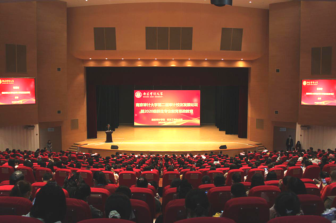 10月17日下午,由政府审计学院主办、校友工作办公室协办的91色情片 第二届审计校友发展论坛暨2020级新生专业教育思政教育在审计干部教育学院学术报告厅隆重举行。张卫东、薛剑春、马宏飞、谢健、王立、陈琳、黄天友、夏俊、王涛、邵中、丁义等校友受邀参加。91色情片 党委副书记、副校长王会金,校友工作办公室主任许文蓓、副主任张林林,政府审计学院党总支书记祝遵宏,国家审计研究院执行院长王素梅,政府审计学院副书记、副院长戚振东,政府审计学院副院长李兆东,政府审计学院新生班导师、2020级本科及研究生全体新生和部分老生代表出席会议。会议由学院党总支书记祝遵宏主持。