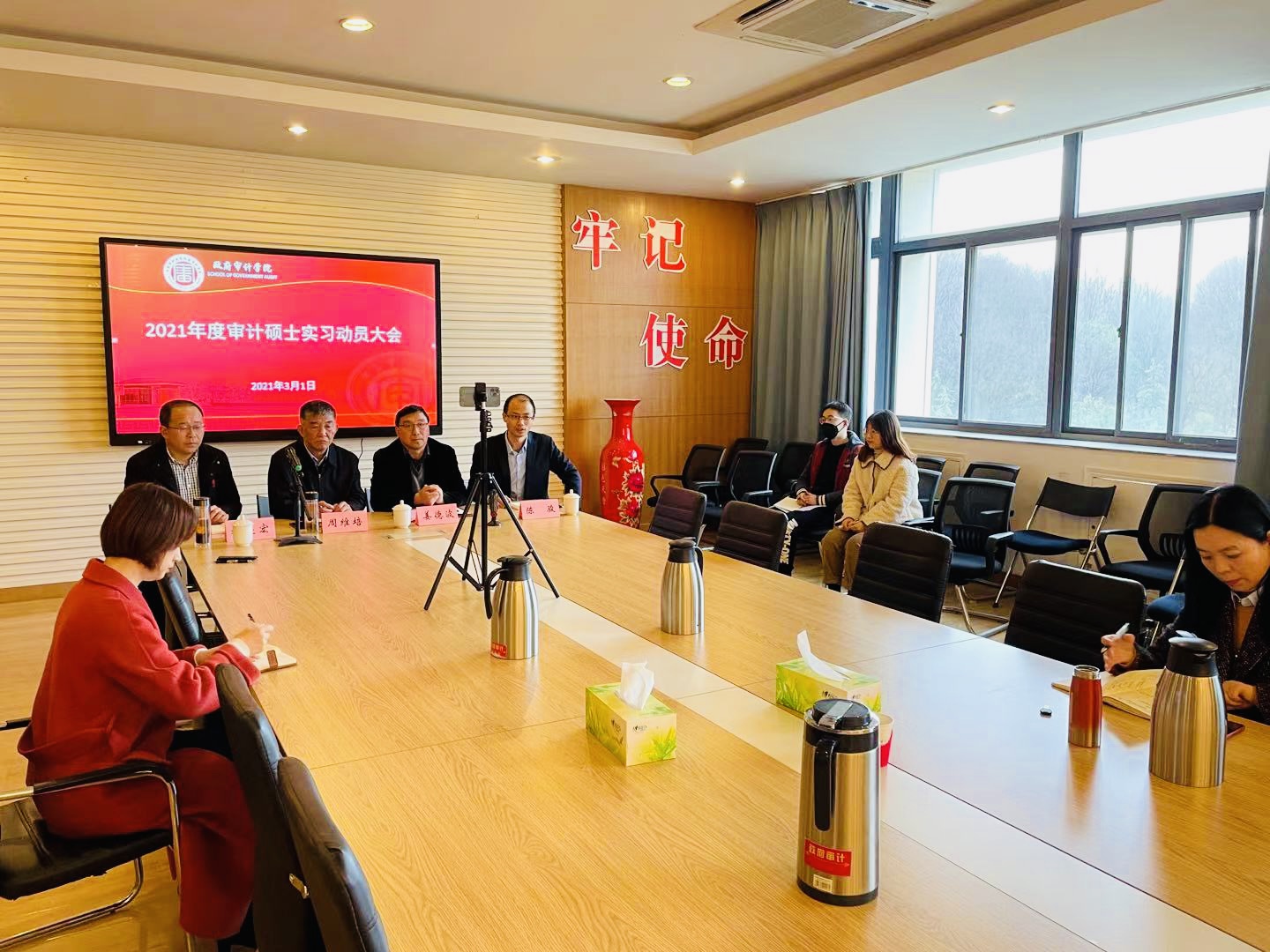 3月1日下午,政府审计学院在敏行楼四楼会议室召开2021年度研究生实习动员大会,受疫情影响,大会线上线下相结合举行。学校研究生院院长姜德波教授、政府审计学院院长周维培教授、党总支书记祝遵宏教授、副院长王士红教授、学科与研究生办公室全体老师和部分教师代表出席会议。2020级审计专硕和2019级审计学硕全体研究生参加会议。会议由政府审计学院执行院长陈骏教授主持。