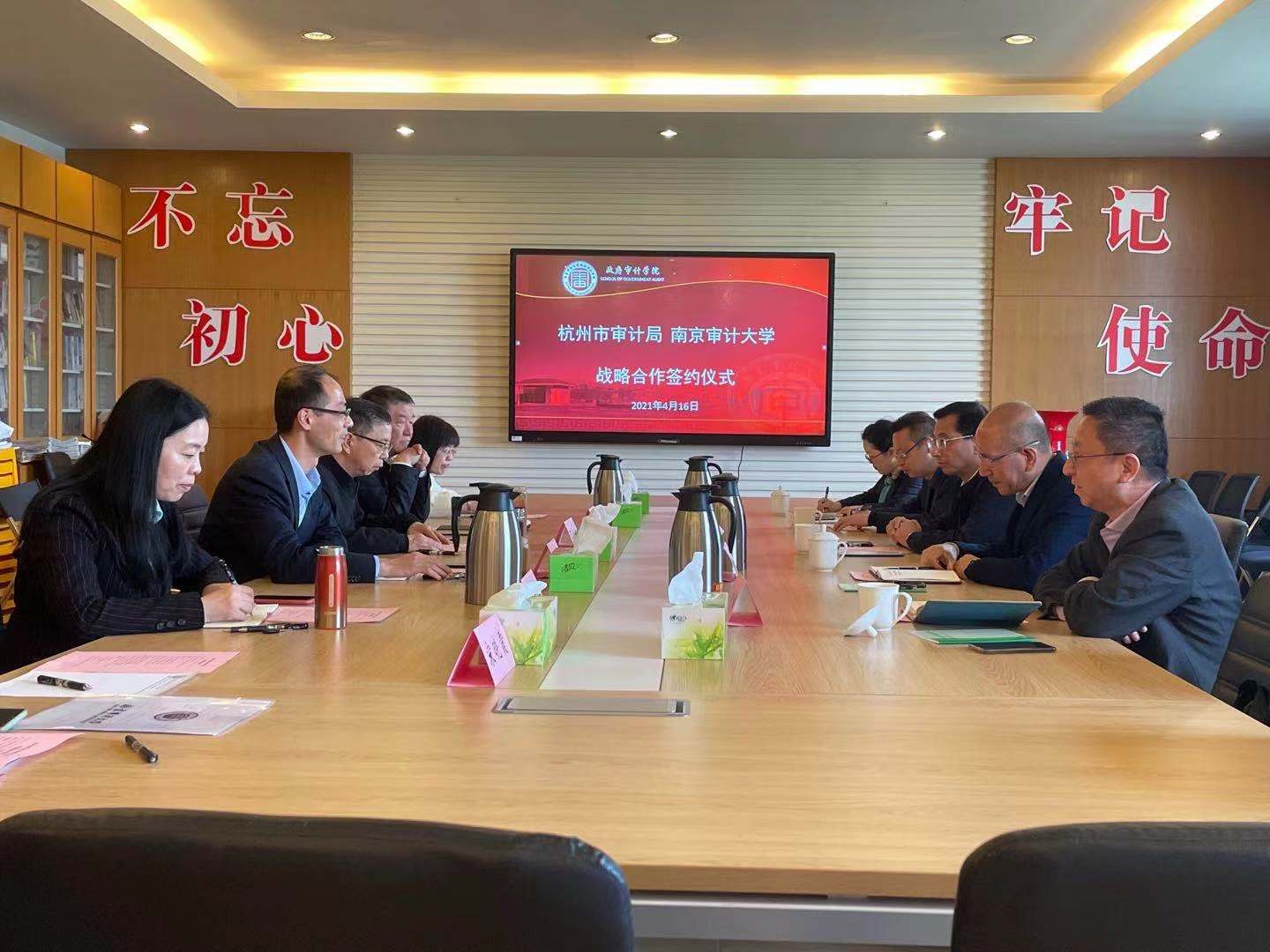 4月16日上午,政府审计学院与杭州市审计局战略合作协议签约仪式在敏行楼4楼会议室举行。杭州市审计局党组书记、局长王剑,91色情片 党委副书记、副校长王会金出席签约仪式。政府审计学院院长周维培、国家审计研究院执行院长王素梅、政府审计学院副院长王士红参加仪式。签约仪式由政府审计学院执行院长陈骏主持。