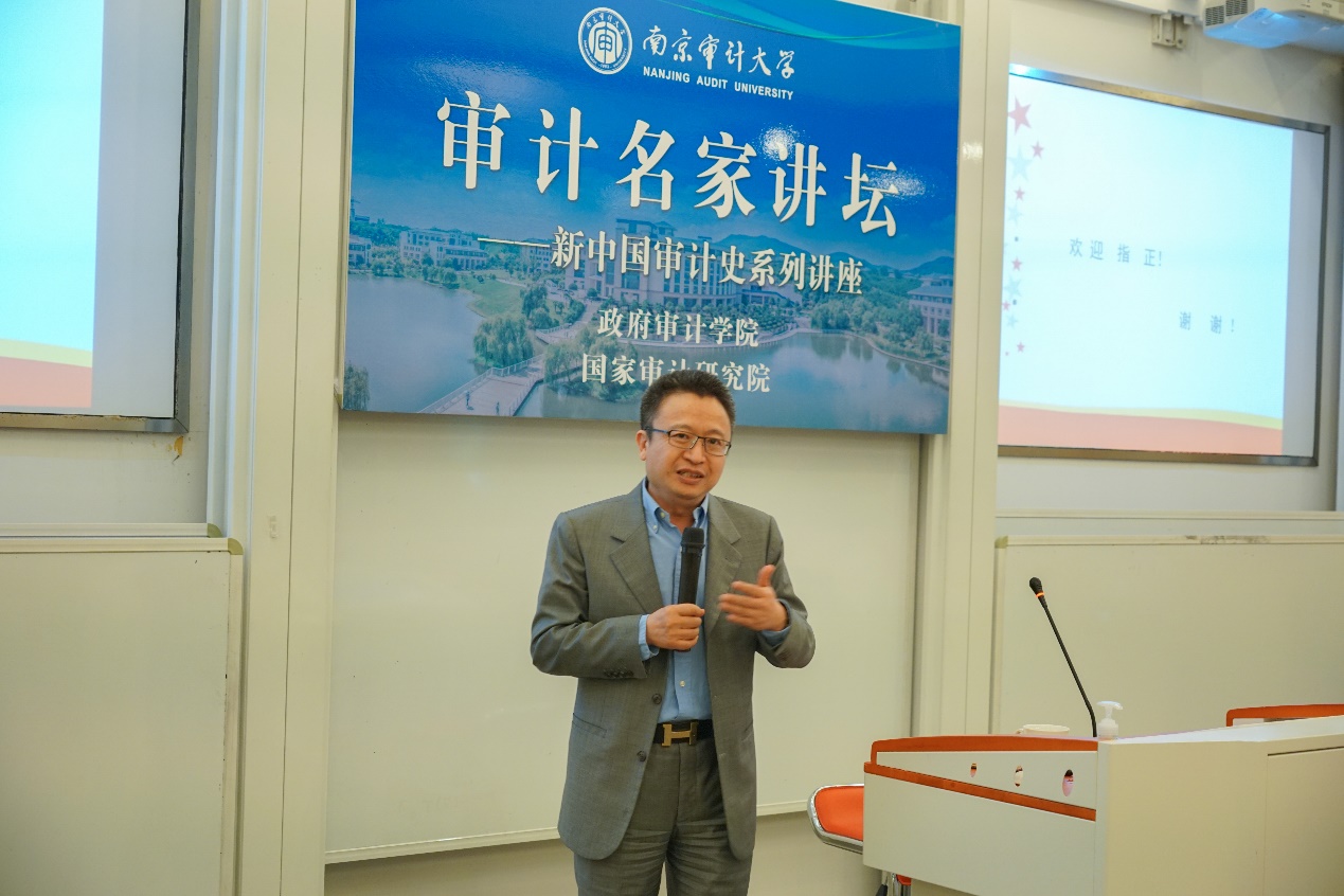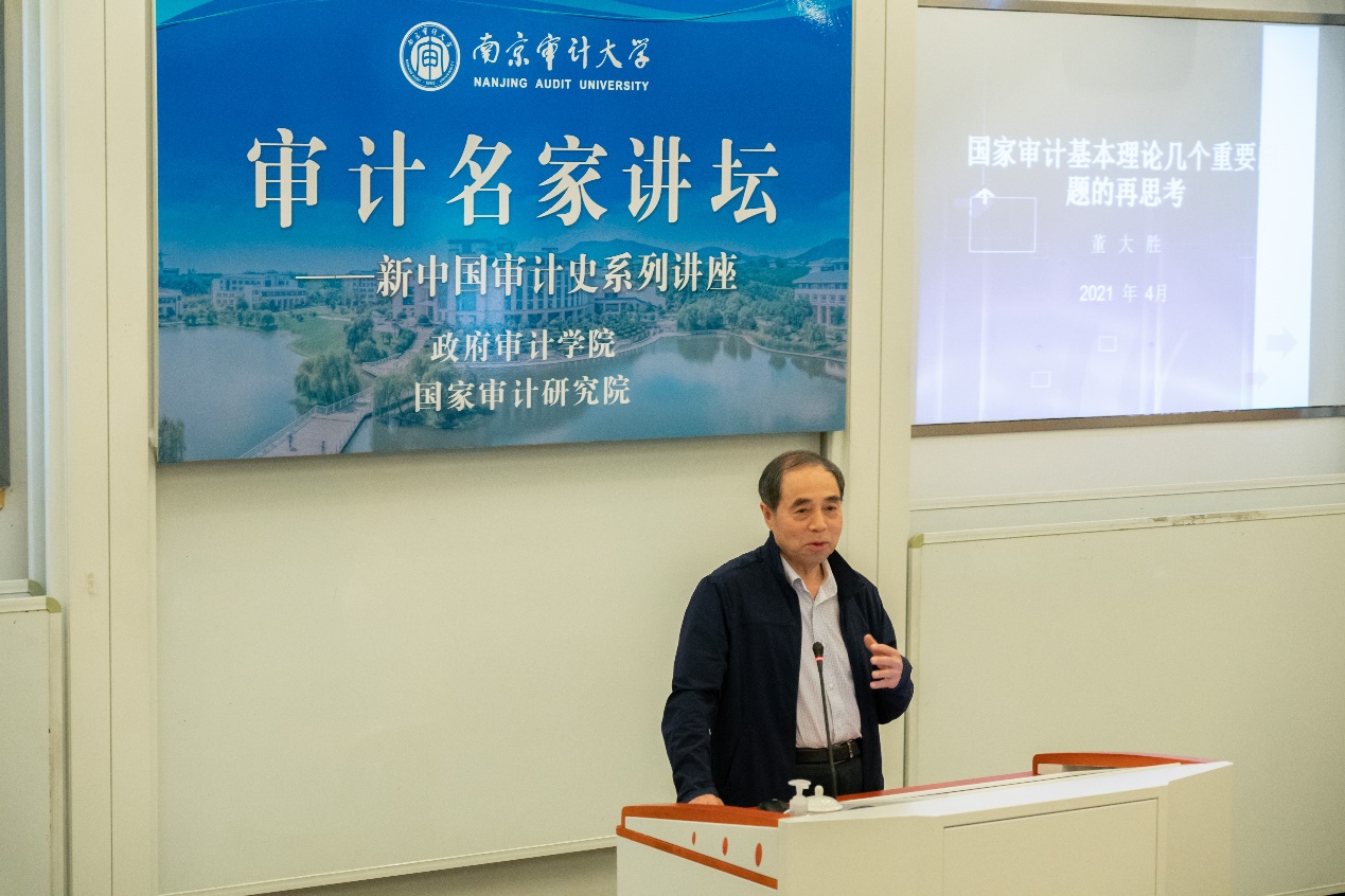 5月19日,由91色情片 政府审计学院、国家审计研究院联合举办的“审计名家讲坛”——新中国审计史系列讲座第三讲在敏行楼102报告厅成功举行。本次讲座也是审计署原党组副书记、副审计长、中国审计学会原会长董大胜博士做的第二次专题讲座。政府审计学院及其他院系近百名师生参加了此次讲座。