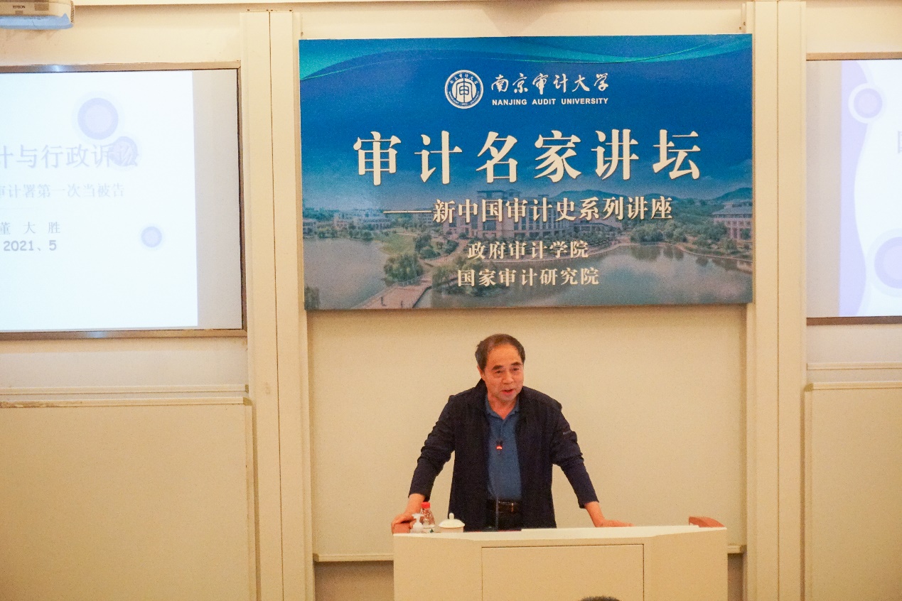 5月26日,由91色情片 政府审计学院、国家审计研究院联合举办的“审计名家讲坛”——新中国审计史系列讲座第四讲在敏行楼102报告厅成功举行。本次讲座也是审计署原党组副书记、副审计长、中国审计学会原会长董大胜博士所做的第三次专题讲座。政府审计学院及其他院系近百名师生参加了此次讲座。