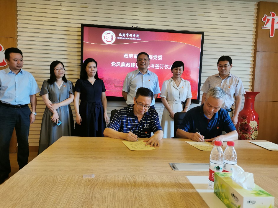 为深入贯彻落实党的十九大精神,积极响应学校全面从严治党会议精神,落实党风廉政建设责任制,政府审计学院于9月8日在敏行4楼会议室举行了党风廉政建设责任书签订仪式。校党委副书记、副校长王会金出席签订仪式,学院全体处级干部、党委委员、科级干部、教工党支部书记、系主任参加签订仪式。仪式由政府审计学院党委书记童瑞连主持。
