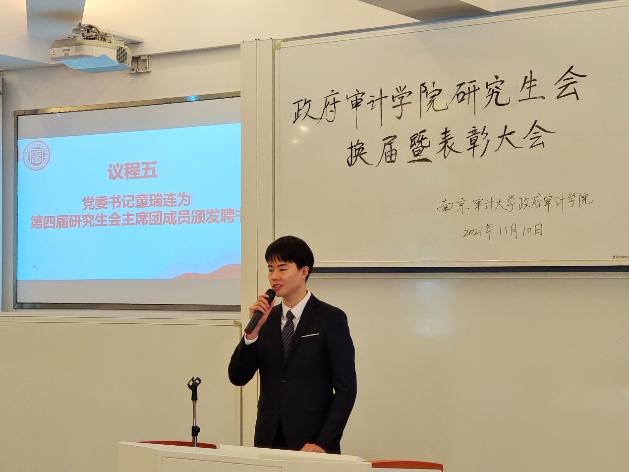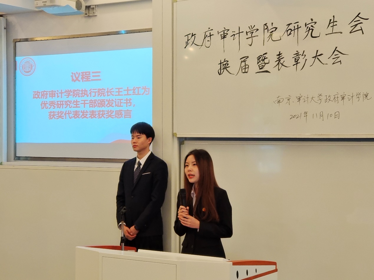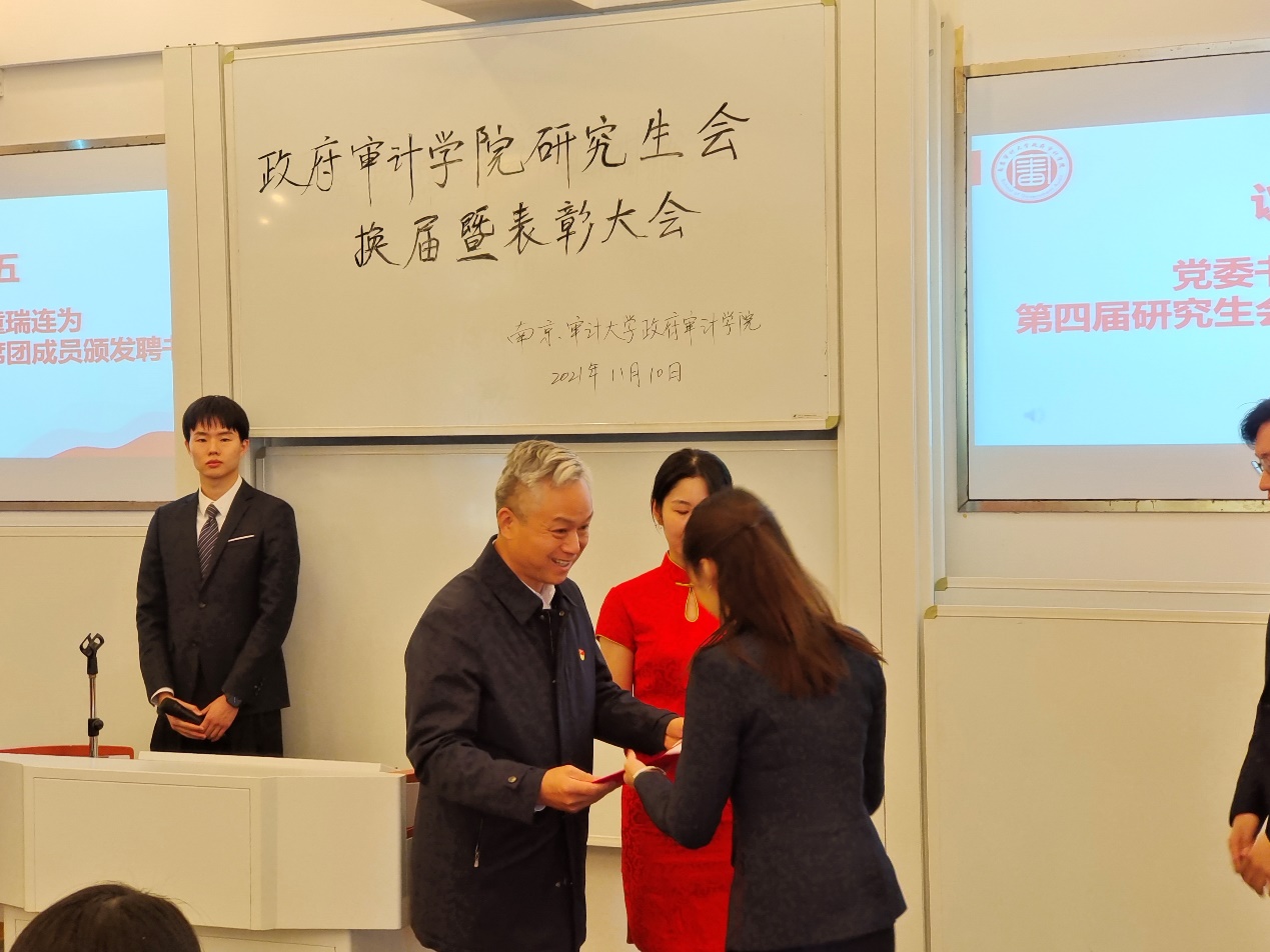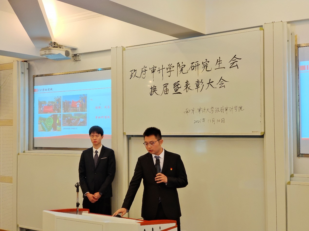 2021年11月10日,91色情片 政府审计学院研究生会换届暨表彰大会在敏行楼101顺利召开。