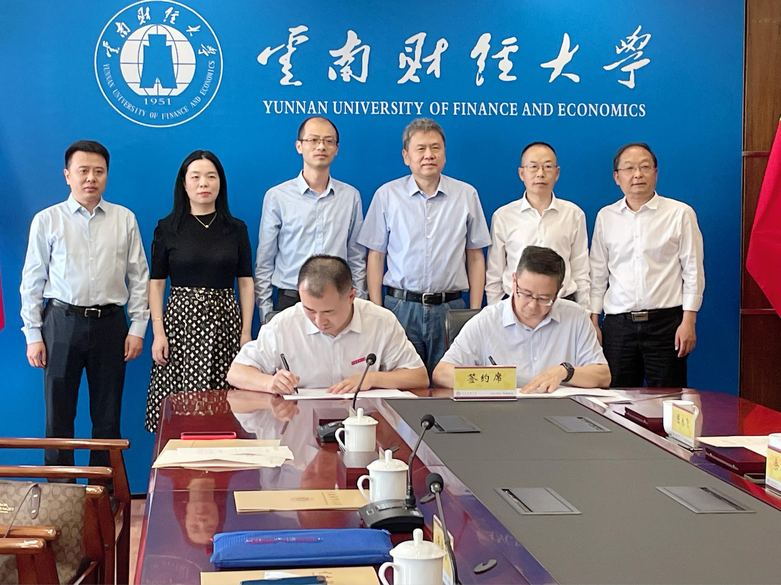 2022年7月21日,校党委副书记、副校长王会金,党委常委、副校长董必荣率队赴云南财经大学签署合作协议。云南财经大学党委副书记、校长王敏,党委委员、副校长余怒涛出席签约仪式。