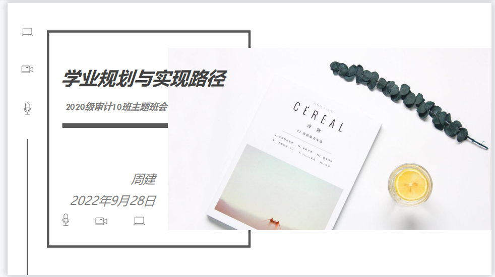 9月28日下午两点,2020级审计10班专业班主任周建老师在敏知楼召开2022秋学期第一次班会,会议主题为《学业规划与实现路径》。