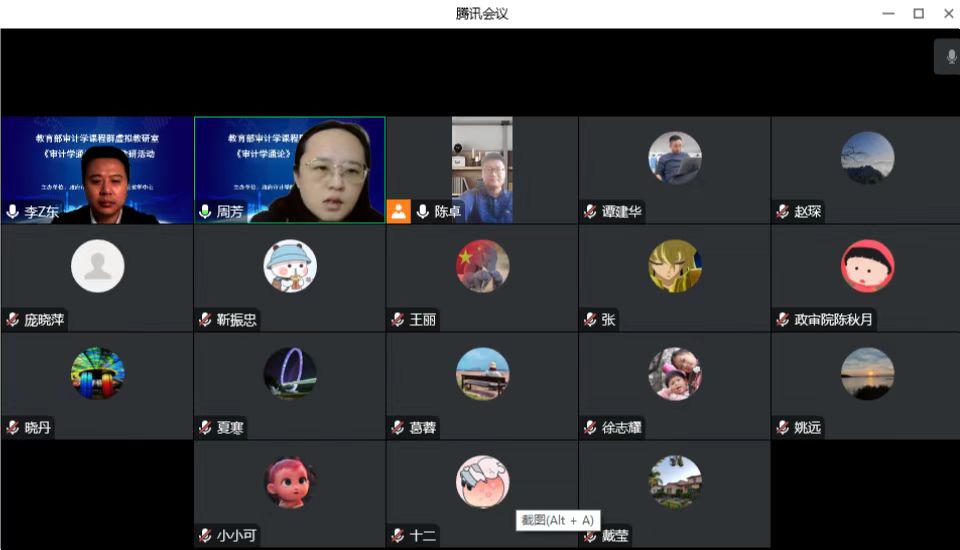 为保证教学质量,提升教学效果,教育部审计学课程群虚拟教研室、审计通识教育中心于11月3日举办《审计学通论》课程期中教学线上交流研讨会,会议由审计通识教育中心副主任陈卓主持,副院长李兆东与承担本学期课程教学任务的全体教师参会。